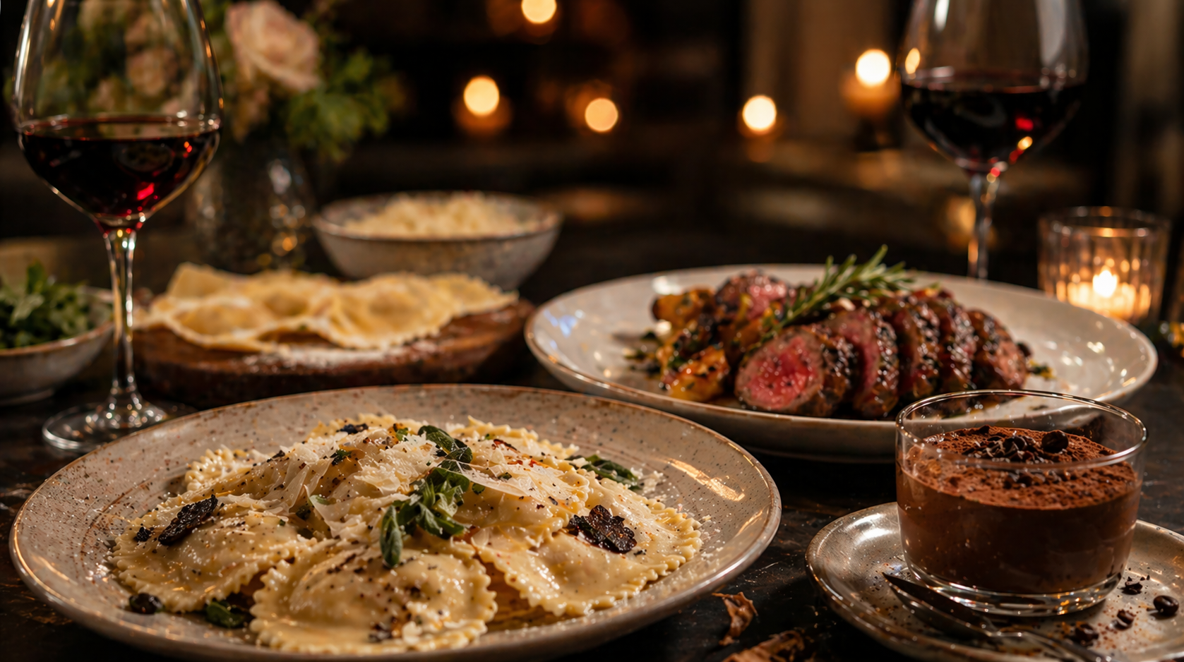 Join us for Italian Date Night Class, a relaxed and interactive cooking experience designed for couples or anyone looking to sharpen their pasta skills at home. Guests will learn approachable techniques for making fresh pasta, craft handmade ravioli, and prepare a full menu featuring seared filet medallions and a decadent chocolate espresso budino. The evening wraps with a playful twist as couples plate each other’s dishes for a fun, romantic finish.
